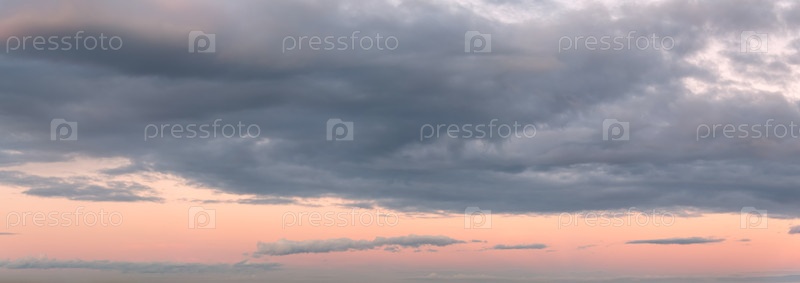 Облачное серое облако движется вдоль розового заката неба. прогноз погоды, карта природы