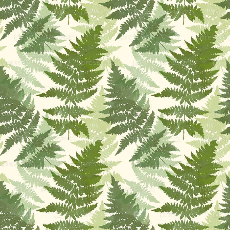 Цветочный акварельный рисунок листьев папоротника. Бесшовный узор лесных растений