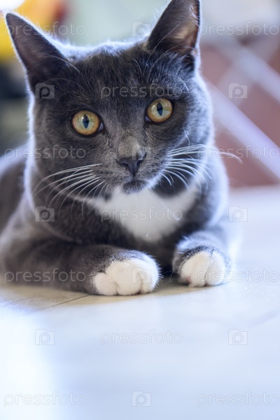 Портрет серого кота с желтыми глазами