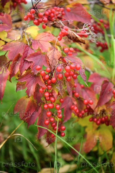 Красные ягоды калина на ветке
