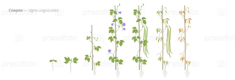 Визуализация стадий роста говяжьего гороха от семян до сбора урожая