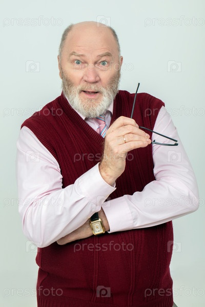 Пожилой мужчина с бородой смотрит в камеру