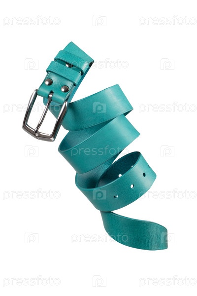 Зеленый кожаный пояс, свернутый на белом фоне