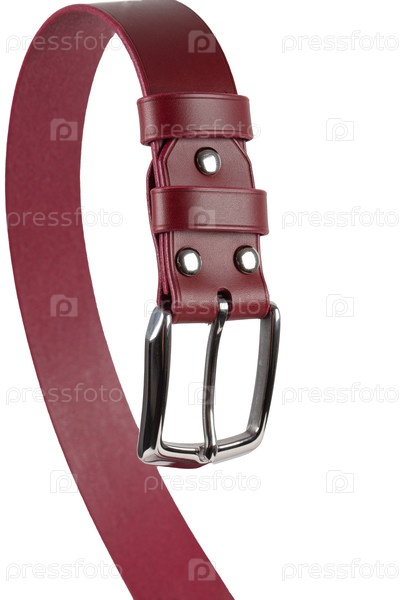 Коричневый кожаный пояс с металлическим плановым застежкой на белом фоне