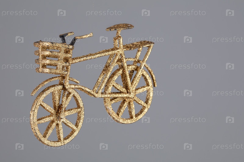 Золотой велосипед-игрушка на сером фоне