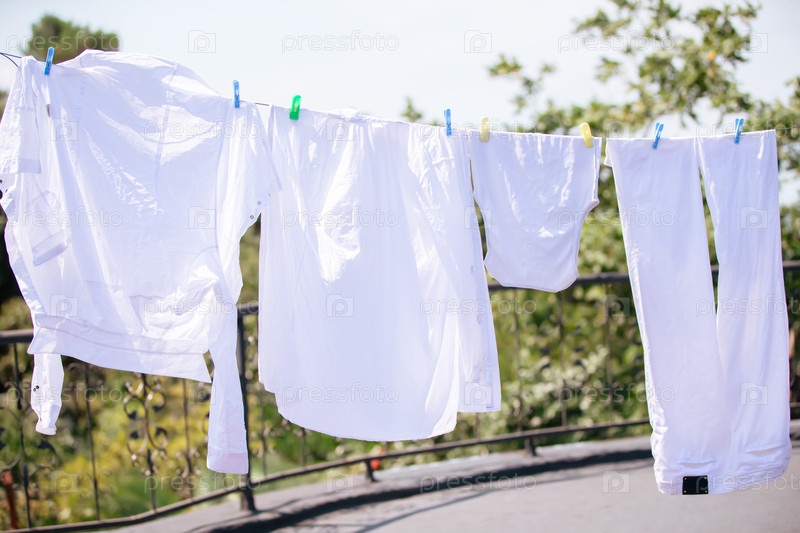 Белая одежда висит и высыхает на ветре