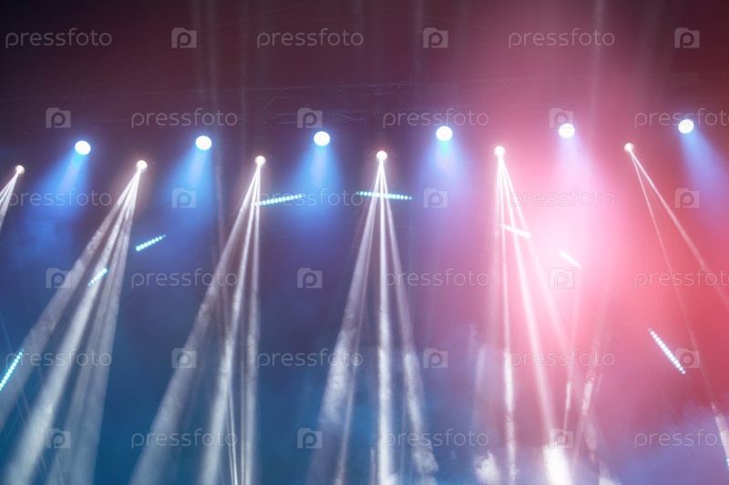 Абстрактный сине-розовый фон с белыми дымящимися лучами света от светофоров сцены