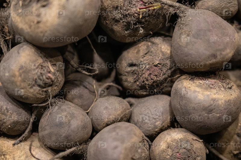 Корни красной свеклы разбросаны по всему прилаву рынка. естественный пищевой фон с копировальным пространством