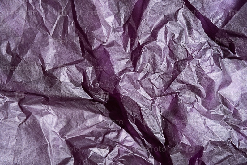 Раздробленная фиолетовая текстура бумаги с подробными морщинами и складками, взгляните внимательно