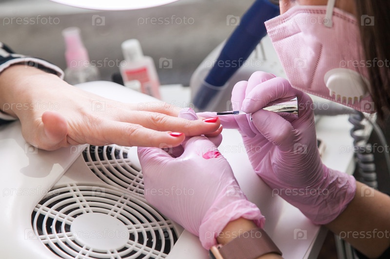 Гель - это польский дизайн. мастерница в салоне рисует кистью на руках клиента. индустрия красоты, концепция творчества