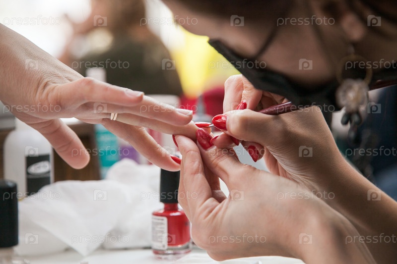 Гель - это польский дизайн. мастерница в салоне рисует кистью на руках клиента. индустрия красоты, концепция творчества