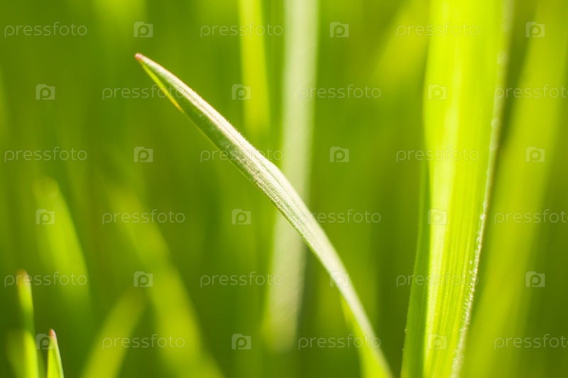Зеленые побеги весенней травы под теплым солнечным светом, сделанный макрообъективным объективом