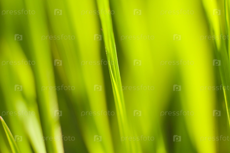 Зеленые побеги весенней травы под теплым солнечным светом, сделанный макрообъективным объективом