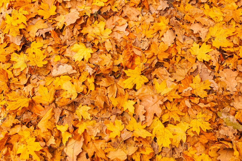 Многие желтые и оранжевые сухие листья лежат на земле