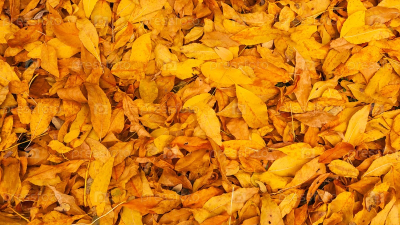 Многие желтые и оранжевые сухие листья лежат на земле
