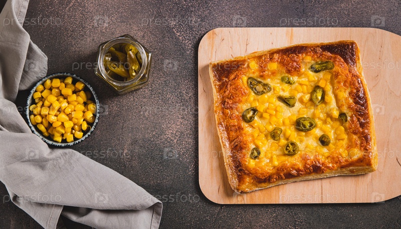 Традиционная мексиканская пицца с халапено, сыром и кукурузой на веб-баннере с лучшими видами