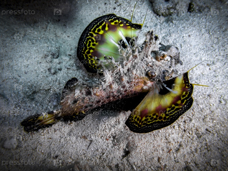 Рыба Inimicus filamentosus, также известная как красноморский ревелер или волокнистая бородавка