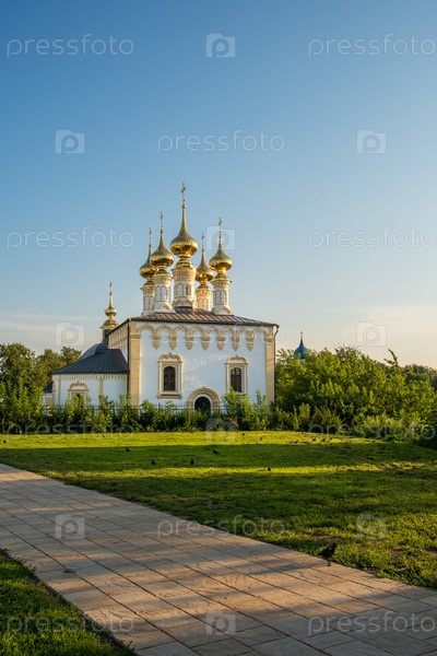 Суздаль, Владимирская область, Россия - 24 июля 2025 г. Церковь входа в Иерусалим с золотыми куполами