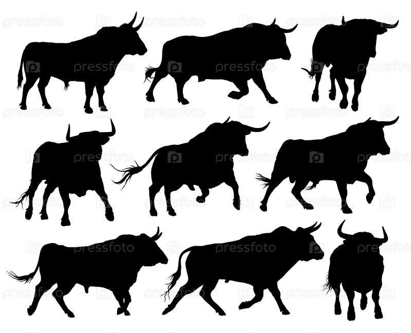 Набор силуэтов больших быков
