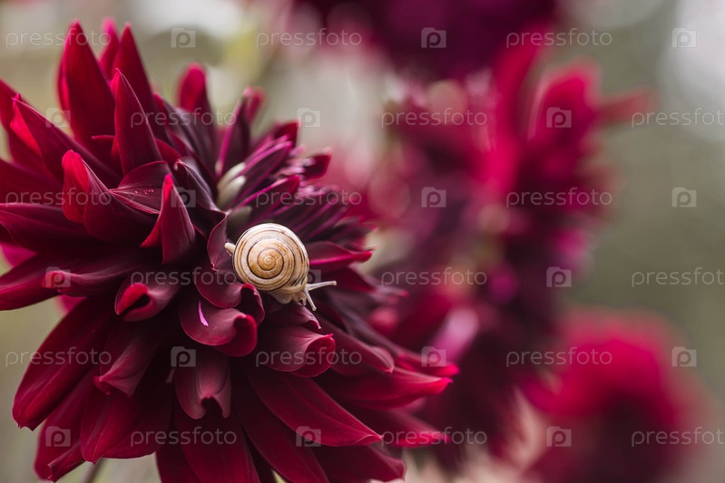 Наземные гастроподные моллюски семейства Helicidae. виноградная улитка (Helix pomatia) на расстоянии цветения. садовый вредитель. съедобная улитка