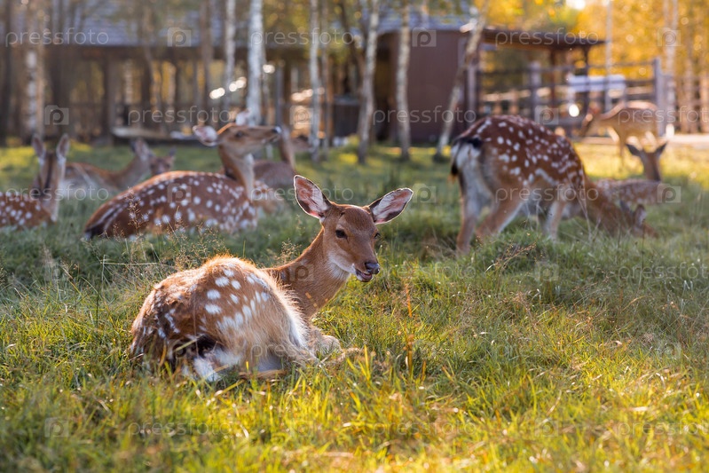 Портрет. Олени в естественной среде обитания, в лесу на частной экоферме. Животноводство. Любовь к животным