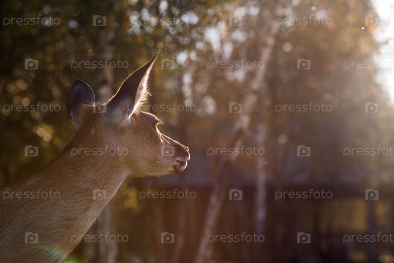 Портрет. Олени в естественной среде обитания, в лесу на частной экоферме. Животноводство. Любовь к животным