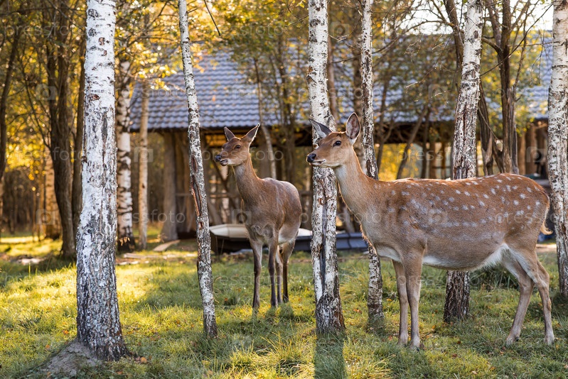 Портрет. Олени в естественной среде обитания, в лесу на частной экоферме. Животноводство. Любовь к животным
