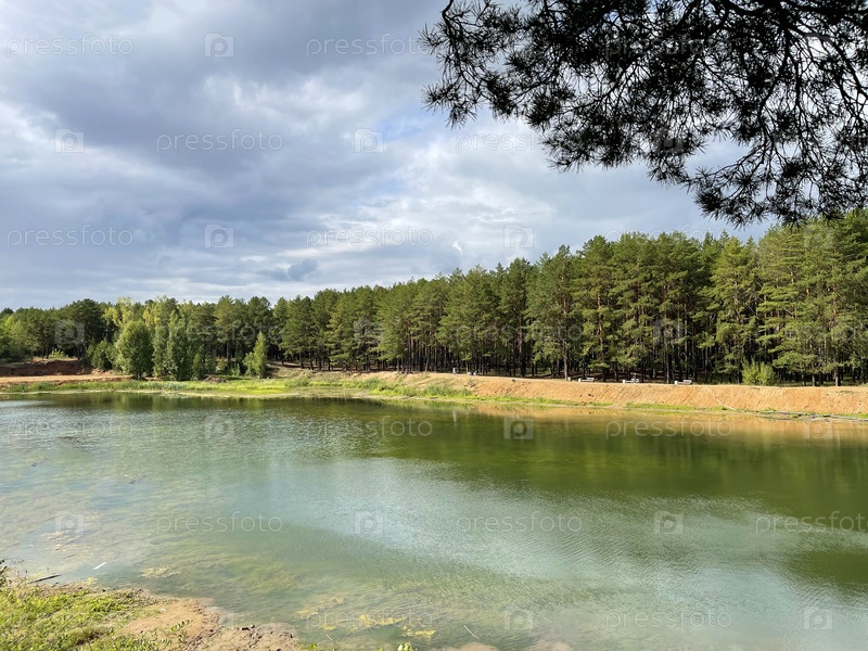 Прекрасный пейзаж, небольшое озеро в лесу