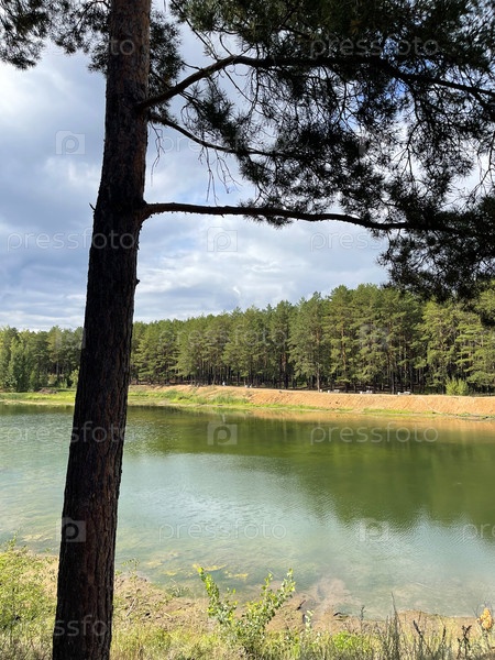 Красивый пейзаж, небольшое озеро в огромном парке в Набережных Челнах, Россия