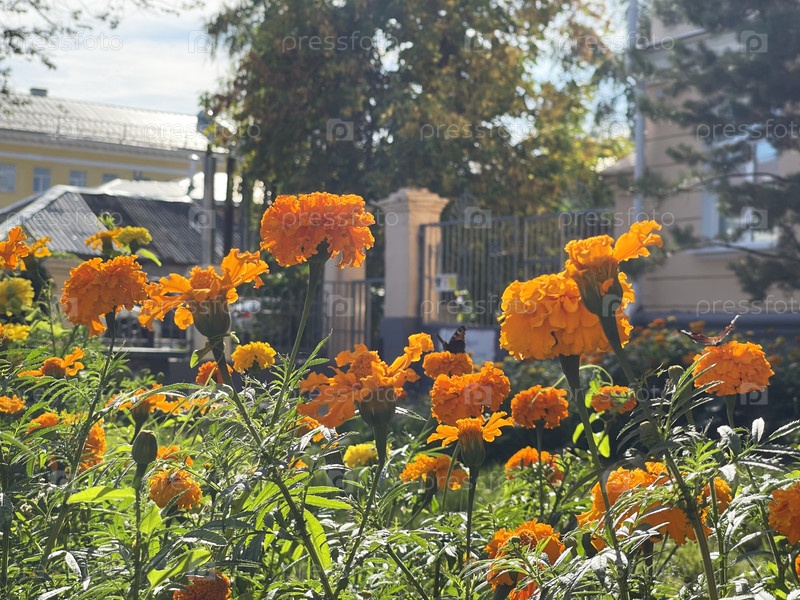 Оранжевые болота в городе цветят летом, Казань, Россия