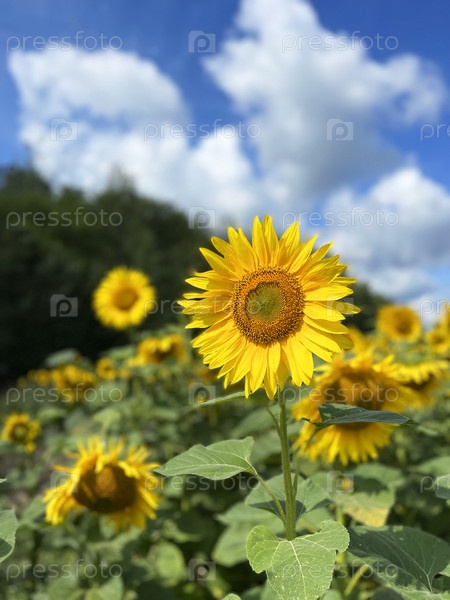 Красивый подсолнечник на поле в солнечный день
