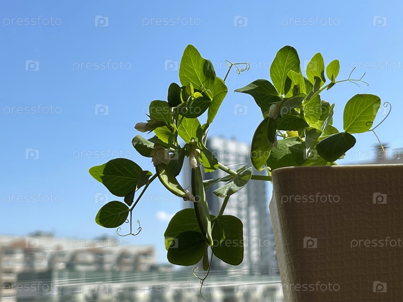 Балконный сад: горох на балконе в жилом многоквартирном доме. скопировать пространство