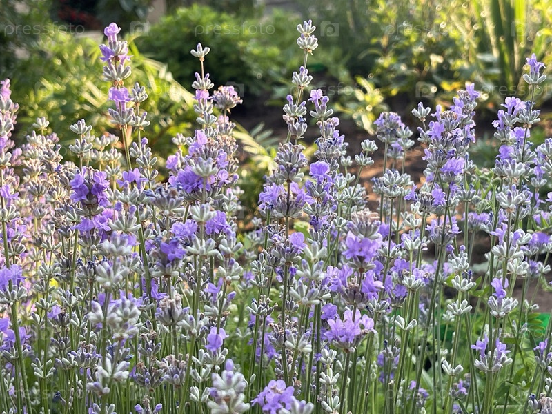 Лаванда в саду в яркий летний день