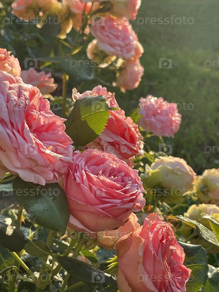 Розы под лучами заходящего солнца в саду