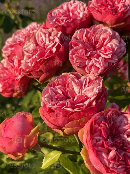 Красные розы на солнце в саду