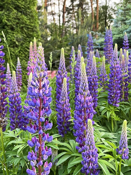 Цветущие люпины в саду весенним днем