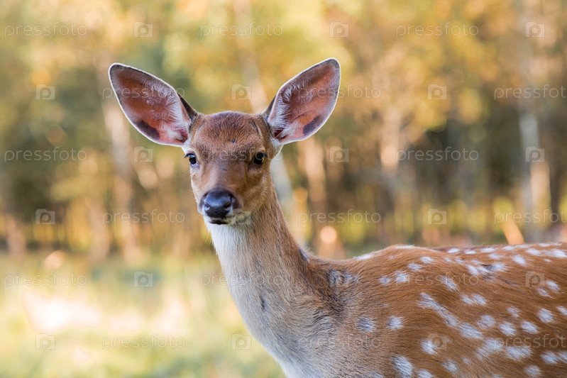 Портрет. Олени в естественной среде обитания, в лесу на частной экоферме. Животноводство. Любовь к животным