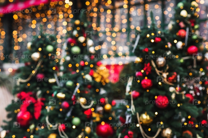 Абстрактный размытый рождественский фон с теплыми огнями елки