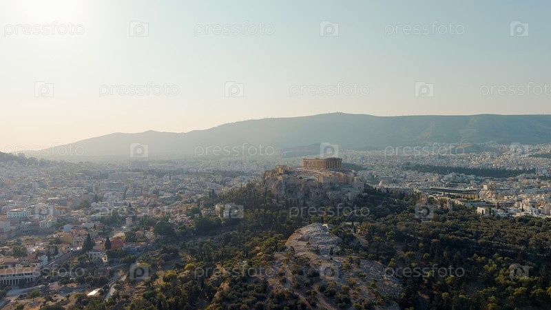 Акрополь Афин в свете утреннего солнца Лето, вид с воздуха