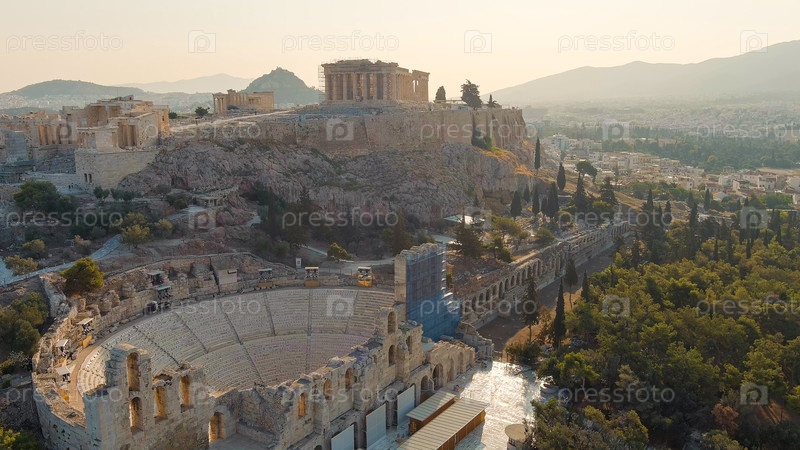 Акрополь Афин в свете утреннего солнца Лето, вид с воздуха
