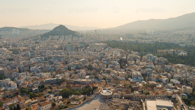 Акрополь Афин в свете утреннего солнца Лето, вид с воздуха