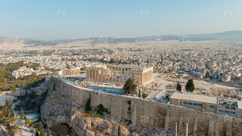 Акрополь Афин в свете утреннего солнца Лето, вид с воздуха