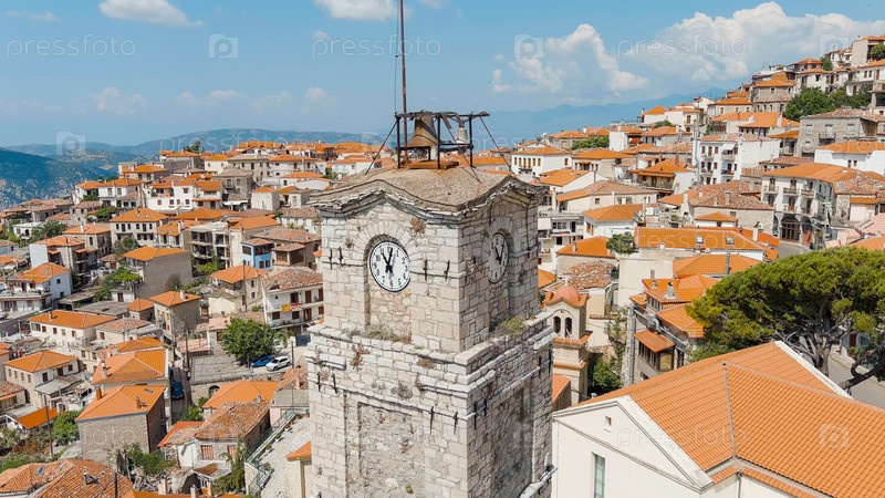 Арахова - небольшой город в Греции, в общине Дистомон-Арахов-Андикира. солнечная погода с облаками. лето, вид из воздуха