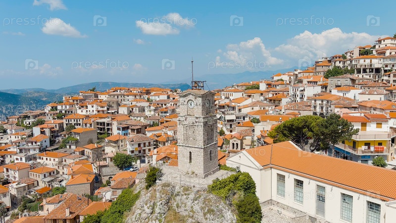 Арахова - небольшой город в Греции, в общине Дистомон-Арахов-Андикира. солнечная погода с облаками. лето, вид из воздуха