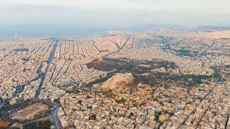 Акрополь Афин в свете утреннего солнца Лето, вид с воздуха