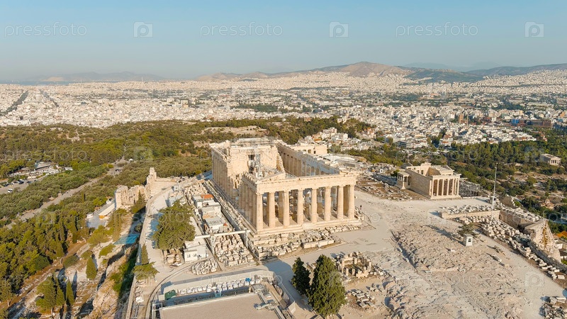 Акрополь Афин в свете утреннего солнца Лето, вид с воздуха