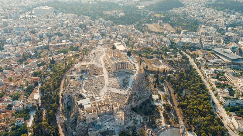 Акрополь Афин в свете утреннего солнца Лето, вид с воздуха