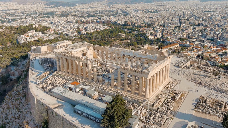 Акрополь Афин в свете утреннего солнца Лето, вид с воздуха