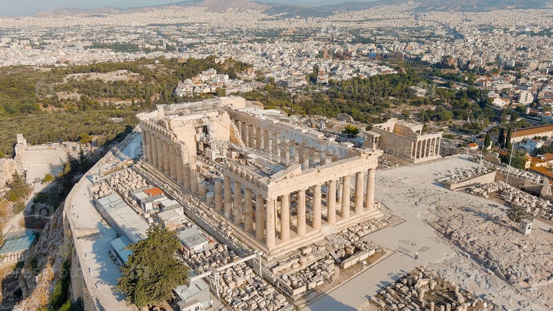Акрополь Афин в свете утреннего солнца Лето, вид с воздуха