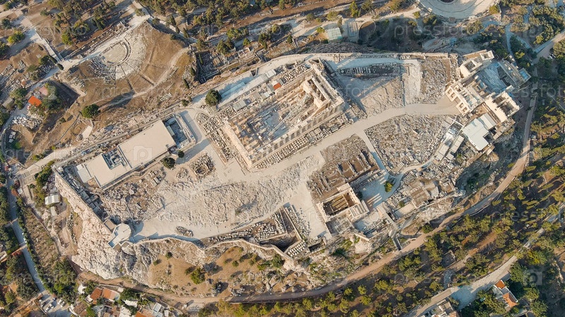 Акрополь Афин в свете утреннего солнца Лето, вид с воздуха